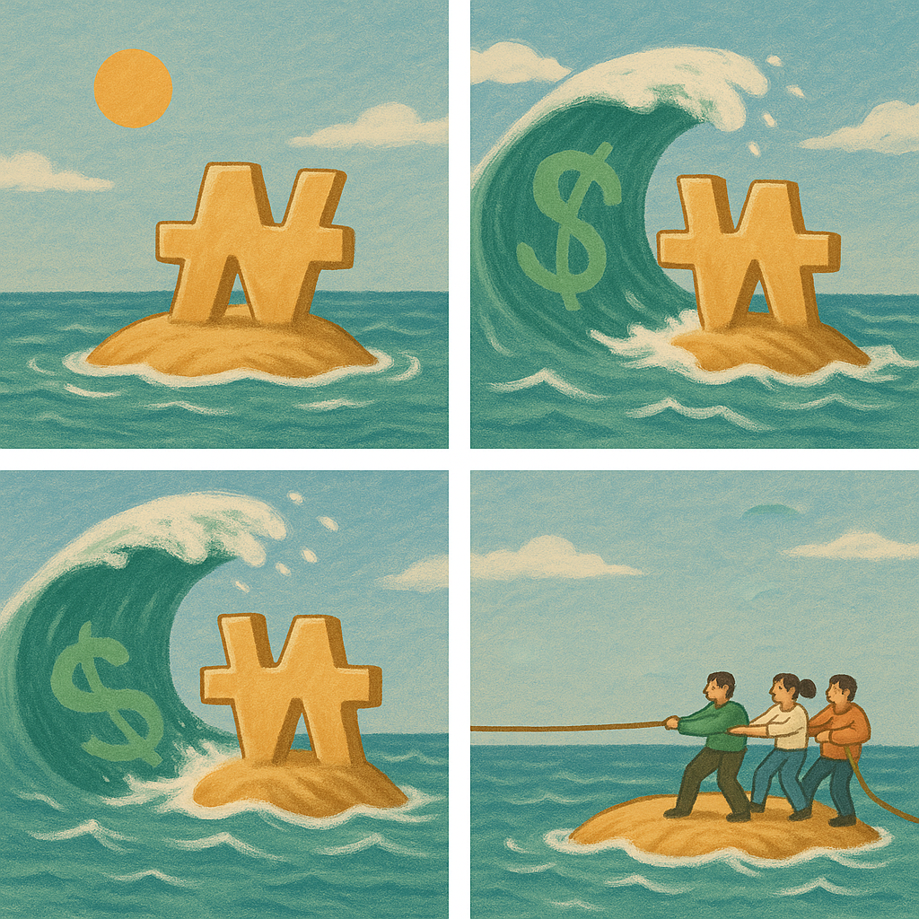 환율이 일시적으로 오르는 건 괜찮지만, 장기적으로 원화가 약세를 지속하면 “한국은 구조적으로 약한 통화국가”라는 인식이 굳어집니다. 그렇게 되면 우리 기업이 해외에서 자금을 조달할 때 금리가 더 높아지고, 국채 신용등급 평가에서도 불리하게 작용해요. 결국 환율 상승은 단순한 외환 문제가 아니라, 국가 신용의 문제로 번지게 됩니다.