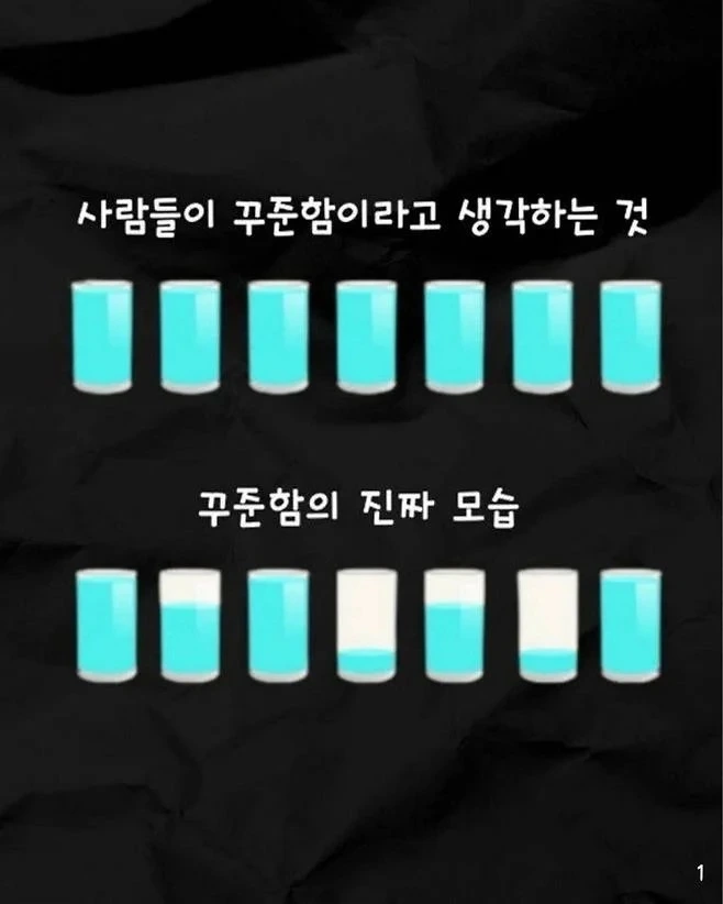 쉽게 생각해보면 꾸준하다는 것은 매일 똑같은 양의 노력을 하는 것 아닐까요. 하루도 빠짐없이 1시간씩 운동을 하거나, 매일 일정한 분량의 책을 읽어야 꾸준하다고 봅니다.