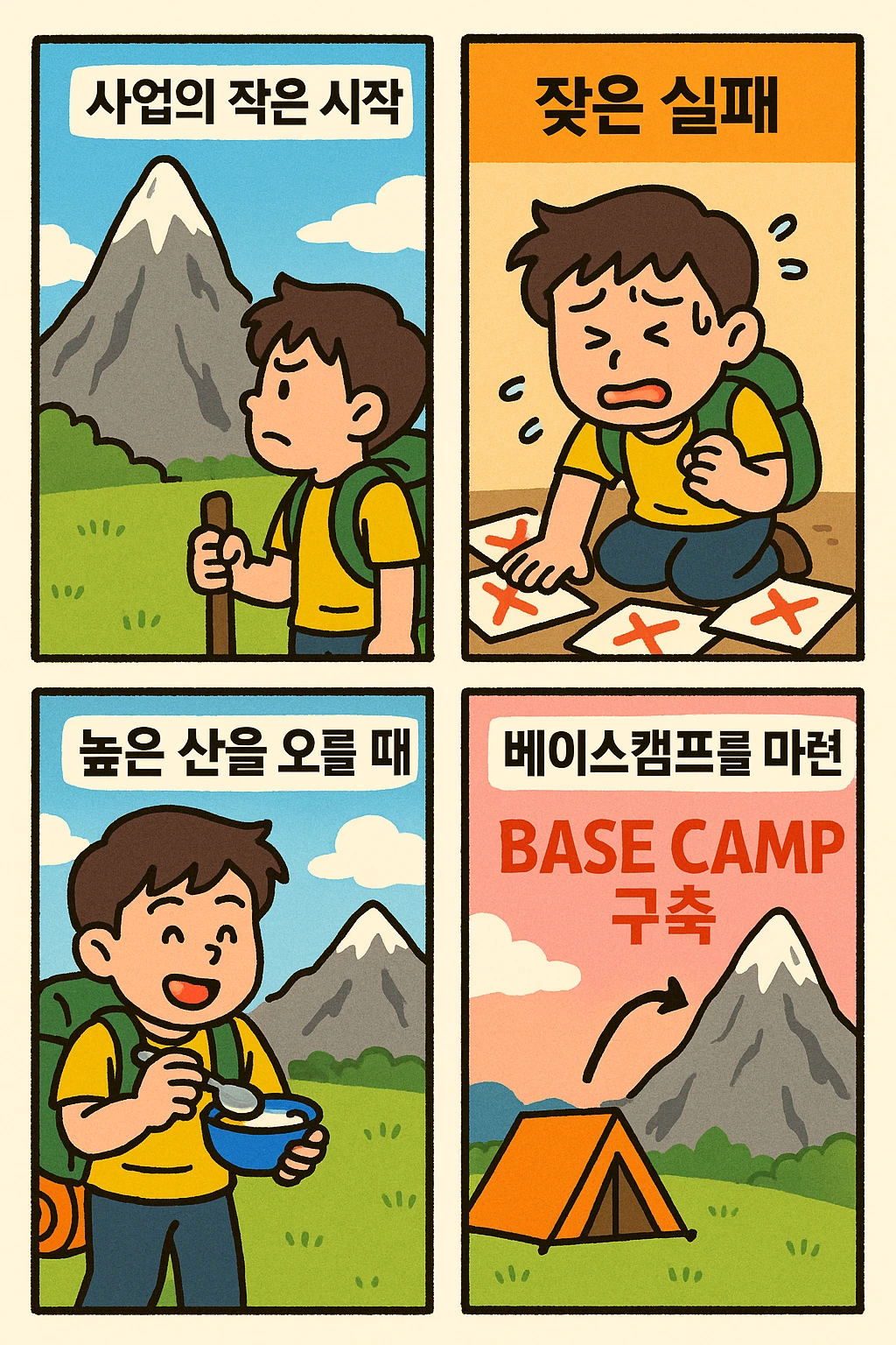 그렇다면 창업의 시작은 어디서 출발해야 할까요? 많은 이들이 간과하지만, 사업의 진정한 시작은 ‘베이스캠프(Base Camp)’를 구축하는 데 있어요. 이는 마치 등산에서 정상 정복을 목표로 하기 전에 중간 기지에서 숨을 고르는 것과 같아요. 이 베이스캠프는 일정 기간 동안 꾸준히 매출을 만들어낼 수 있는 ‘기반 사업’을 의미해요. 무조건 거창하게 시작할 필요는 없어요. 오히려 처음에는 작은 MVP(Minimum Viable Product, 최소 실행 제품)를 만들고 시장의 반응을 확인하는 것이 중요해요. 고객의 피드백을 받고, 방향이 잘못됐다는 판단이 들면 과감히 피봇팅(pivoting)을 해야 해요. 이건 실패가 아니라 방향 수정이에요.