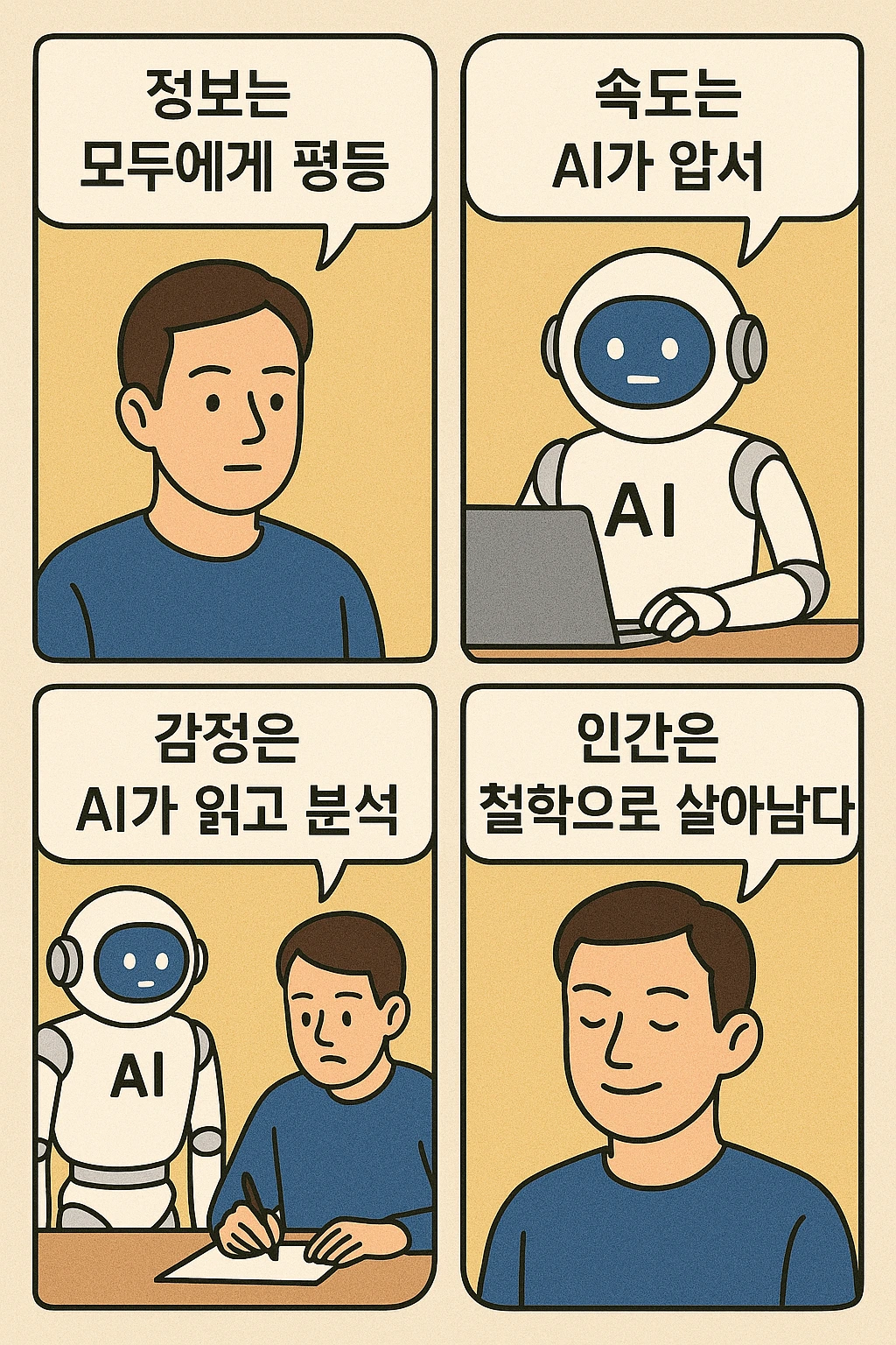 그렇다면 우리는 이러한 환경 속에서 무조건 약자일까요? 꼭 그렇진 않아요. 오히려 우리는 AI가 할 수 없는 가장 인간적인 영역인 ‘철학’과 ‘인내’, ‘신념’을 가질 수 있어요. 찰리 멍거가 말했듯이, “지루함을 견디는 힘”은 여전히 AI가 따라올 수 없는 인간의 영역이에요.