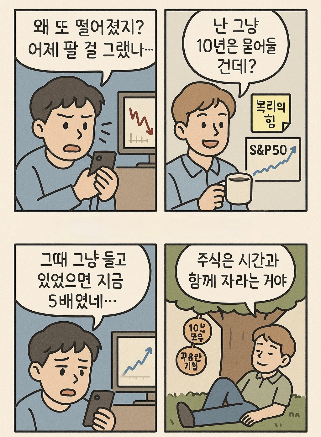결국 시장은 참을성 있는 자에게 보상을 주고, 조급한 자에게는 수업료를 받는 구조예요. 여러분도 오늘부터는 주식 투자에 있어 ‘시간’이라는 강력한 아군을 믿고 함께 걸어보는 건 어떨까요?