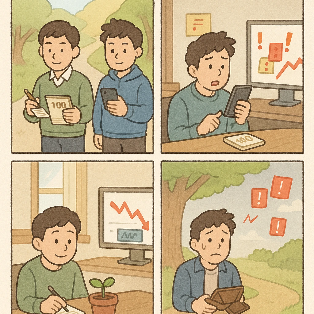 투기를 하는 사람은 언제나 외부에서 정답을 찾아요. 남들이 뭐라 했는지, 어디서 추천했는지, 지금 핫한 게 뭔지에만 집중해요. 자기 기준이 없기 때문에 쉽게 흔들리고, 여러 번 사고팔며 손실을 키우기도 해요.