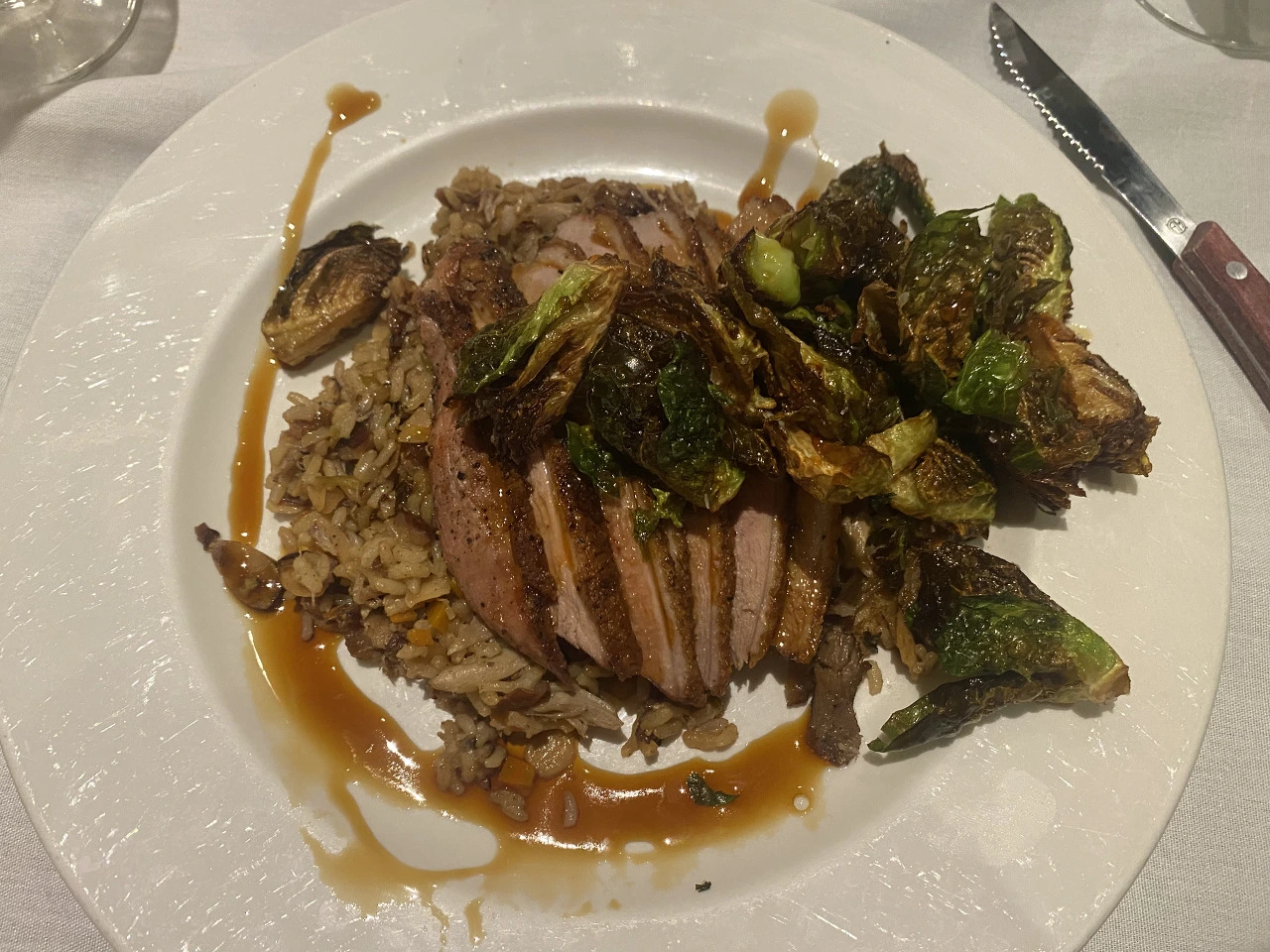 하며 어떻게 외국인이 제 2외국어를 하는데 모국어 억양이 없을 수 있는지 칭찬과 대화를 계속 이어가셨다. 큰아버님은 혹시 우리가 본인들 테이블을 이어받을 수 있는지 직원에게 물어보셨고, 직원은 흔쾌히 그러라고 했다. 두 분은 곧 저녁 잘 먹으라고 자리를 떠나시면서, 계산은 자기네가 미리 다 했으니 저녁 맛있는 걸로 먹고, 와인도 마시고, 디저트도 꼭 먹고 가라며 당부하셨다. 오늘 이렇게 서프라이즈로 만나서 너무너무 반가웠다고. 그 날 먹은 나의 오리고기와 버섯을 곁들인 야생 쌀 요리는 어마어마하게 맛있었다ㅏ.