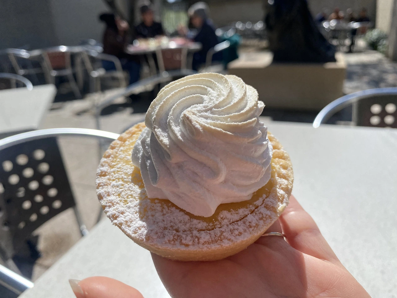 여기 카페는 작지만 알찼다. 각종 와인과 음료, 샌드위치와 디저트종류가 있었다. 우리는 작은 머랭 레몬타르트와 음료 하나를 사들고 밖에 앉았다.