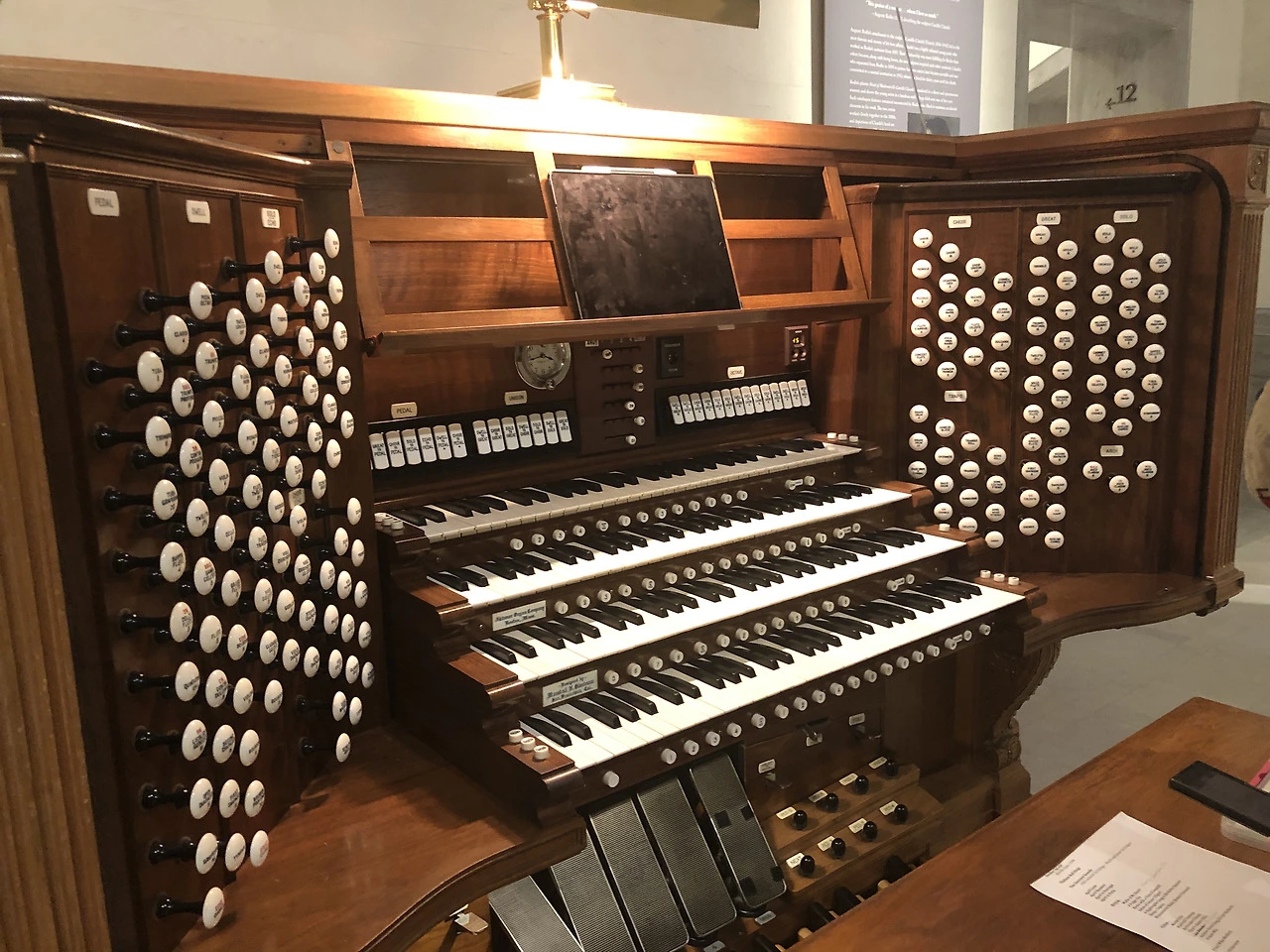 또 신기했던 점은, 오르간 자체가 몇 십 명 분의 오케스트라를 한 사람이 연주할 수 있도록 만들어진 악기였다는 것이었다. 저 하얀 레버 처럼 보이는 것이 모두 다른 악기 소리를 낼 수 있도록 바꾸는 도구란다! 그러기 위해서 오르간 연주자는 다양한 악기를 연주하기 위해 4단이나 되는 손 건반 + 발 건반까지 손발이 다 따로, 또 같이 연주를 해야한다. 그러니까 이 것 하나로 팀파니 부터 심벌즈, 캐스터네츠, 현악기나 관악기 소리까지 흉내 낼 수 있다! 어머나 세상에 신기해라! 천둥드럼(?) 소리도 들려주셨는데, 건물 전체가 진동하는 듯한, 중압감이 느껴졌다.
