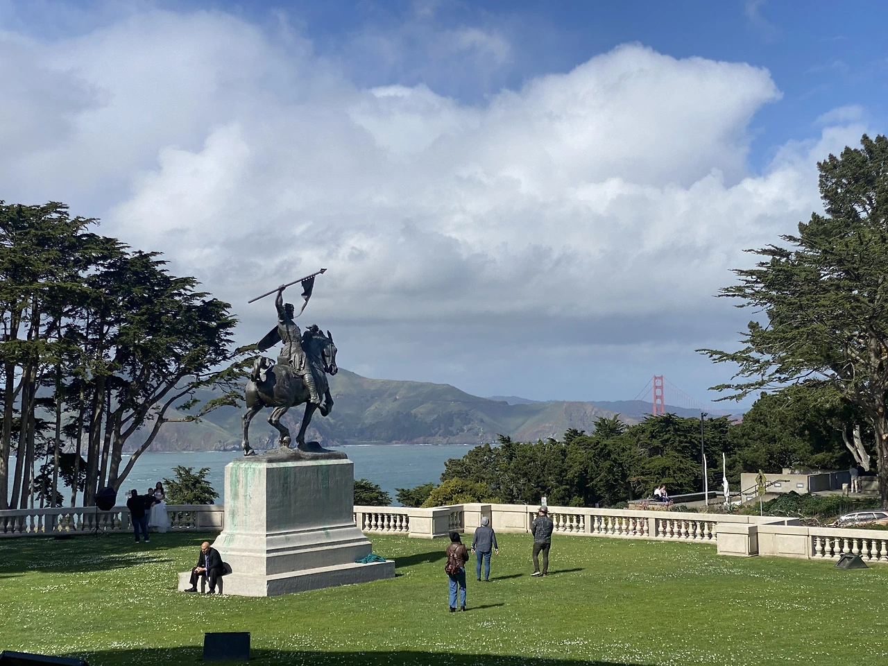저 멀리 금문교와 금문교 너머 마린헤드랜드가 한 눈에 보인다. 실제로 보면 건너편의 경치가 기가 막히다. 사람들이 자유롭게 자기 하고 싶은 걸 한다. 웨딩 스냅을 찍는 젊은 커플, 앉아서 쉬는 사람, 태극권 비슷한 걸 하는 사람들까지.