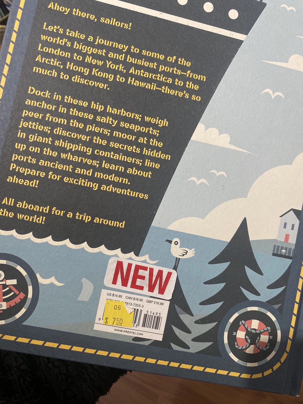 그렇다, 북 세일 전단을 다시 자세히 살펴보면 '책 전품목, 제일 낮은 가격에서 1/2'. 저 노란 딱지가 최종금액이 아니고 저기서 또 반값이었다! 원가가 23.99였던 책을 1/4 가격에 산 셈. 이런 걸 횡재라고 하나? 그럼 아까 봤던 어린이 책들도, 7불, 8불이 아니라 3-4불 짜리였다! (앗 샀어야 했어..)