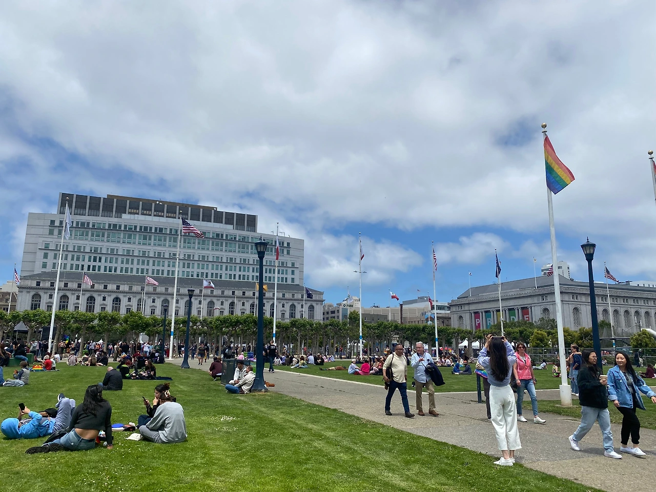 매 년 6월이 되면 샌프란시스코는 프라이드 퍼레이드 주말 준비로 도시 전체가 알록달록해 진다. 메이저 기업들이 대대적으로 후원을 하고, 시 차원에서 아주 공을 들여 준비한다. 6월 막주 일요일 아침에 4시간은 이어지는 화려한 퍼레이드가 메인 이벤트이고, 그 전 금/토에는 갖가지 행사가 벌어진다. 일요일에 날씨가 흐리고 추워 프라이드 퍼레이드는 온라인으로 봤지만 (비추다. 화면이 정신없다. 현장에 가서 보시라 훨씬 재밌다), 토요일에 시티홀 지구 한가운데에서 하는 축제는 다녀왔다.