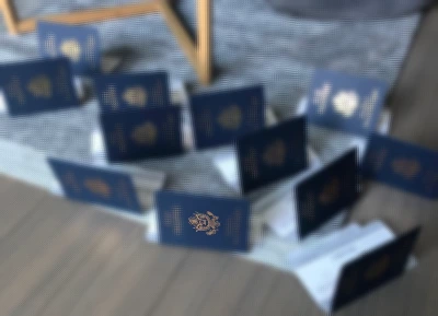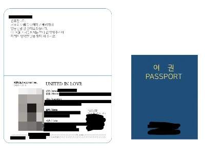 비슷한 디자인을 하는 디자이너를 또 엣지에서 찾아서 가본을 보내고 수정하는 작업을 계속했고, 어찌어찌 프린트 된 것들을 받았다. 억.. 이번엔 왜 이래 퀄러티가 너무 구렸다. 매트한 느낌의 여권 느낌이 아니라 빤딱빤딱한 코팅지 느낌의 재질에 접는 라인이 삐뚤어 여권을 접으면 꼬다리가 맞지를 않았고, 게다가 결혼선물을 보고 고를 수 있게 넣어놓은 큐알코드까지 빠져있었다. 디자이너에게 다시 연락을 하자 여행에갔다왔네 메일을 이제봤네 미안하다며 큐알코드 부분을 수정해서 다시 보내주었으나 아, 그냥 봐줄래도 도저히 여권 느낌이 안났다. 뻔떡거리는 코팅지였을 뿐.