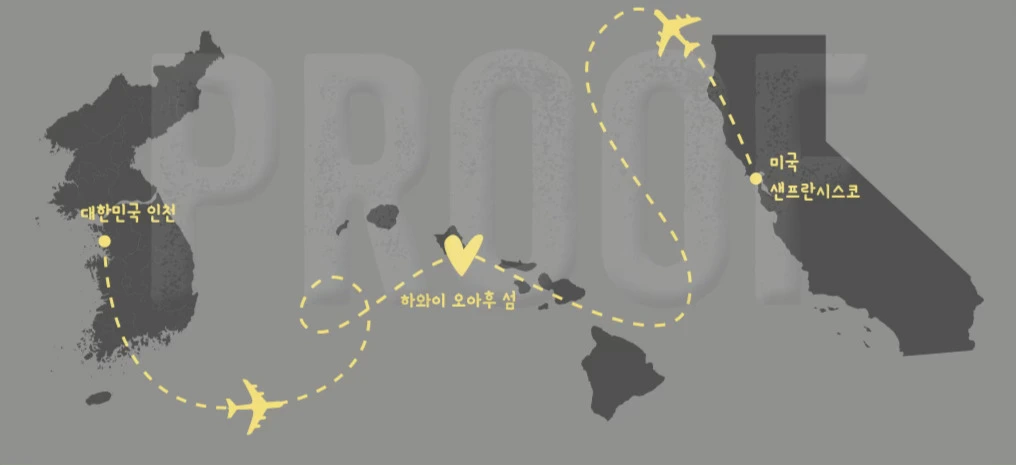 우리는 인원을 우리 포함 40명을 잡았기 때문에 내 쪽 19명 남편 19명으로 반반 나눴다. 그걸 다시 카드를 보낼 가구 당으로 세어보니 사실 카드는 20개 정도만 필요했다. 한국과 미국 각지에서 오기 때문에 모든 인쇄물은 2개 국어로 하고 싶었다. Etsy라고 커스텀 제품들 많이 만드는 사이트에 내가 생각하고 있던 디자인을 하시는 분이 있어 혹시 외국어(한국어)가 써 있는 것도 가능한 지 연락을 취했다. 그녀는 충분히 가능하다고 했고, 나는 Mock up(가본?)을 대강 파워포인트의 애플버젼인 키노트로 만들어 보냈는데 그게 생각보다 괜찮았다. 왼쪽 오른쪽에 각각 한국과 캘리포니아 지도를 넣고 중간에 하와이로 이어져 만나는 형식이고, 양면으로 만들어 각각 한 면은 한국어, 다른 한 면은 영어로 했다.