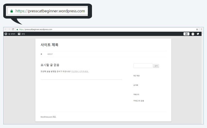 단, 무료일 경우 ‘.wordpress.com’이 도메인 이름 뒤에 붙고
