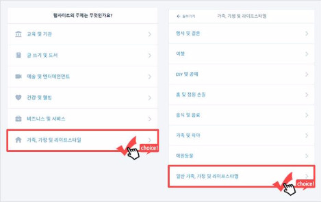 저의 경우 주제는 ‘가족, 가정 및 라이프스타일’,