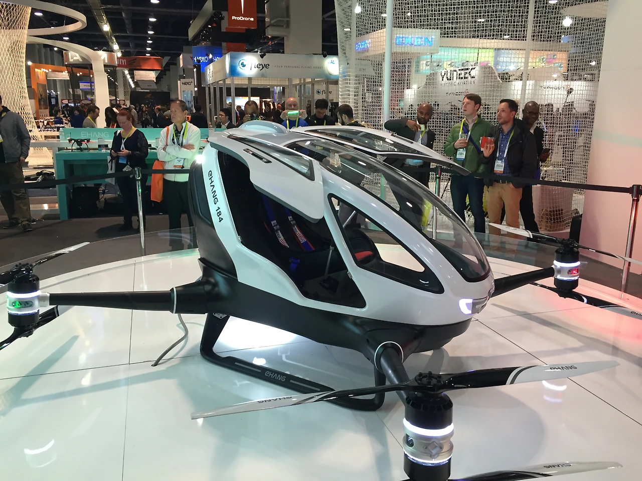드론은 올해도 관심을 받았습니다. 특히 사람이 타는 드론이 공개됐는데요. 중국회사 ‘이항(Ehang)’에서 ‘드론184’라는 콘셉트 제품을 선보였습니다. 8개의 프로펠러로 사람이 탈 수 있는 개념이었습니다. 프랑스 회사 ‘패럿(Parrot)’은 ‘디스코’라는 새로운 드론을 선보였는데요. 가상현실(VR)기기를 착용하고 1인칭 시점에서 조종할 수 있는 새로운 경험을 선사했습니다.
