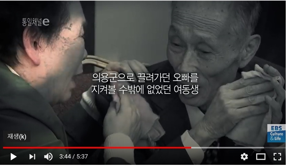 이 영상을 보여줬더니 감수성 깊은 여학생이 울기 시작합니다. 하나 둘 따라 우는 여학생들과 슬프지만 울어서는 안 된다는 표정이 역력한 남학생들, 개중에는 니들 왜 우냐며 장난치는 남학생들도 있었지만 슬픔을 누르기 위한 한 방법이었으리라 생각합니다. 감정을 솔직하게 표현하는 00가 너무 이쁘다고 칭찬을 한 후 나도 눈물을 훔쳤더니 많은 학생들이 마음 놓고 슬픔을 표현했습니다. 그리고 앞으로의 통일 수업은 순조 로우리라는 느낌도 가져 봤습니다.