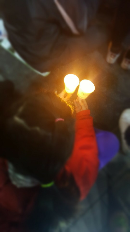 추운 콘크리트 바닥에 촛불을 들고 앉아 있는 내 아이를 보니 또 눈물이 나고 이럴 수밖에 없는 현실이 기가 막혔다. 부끄럽지 않은 어른도 많다는 것을 보여주고 싶어 같이 찬바람을 맞았다.