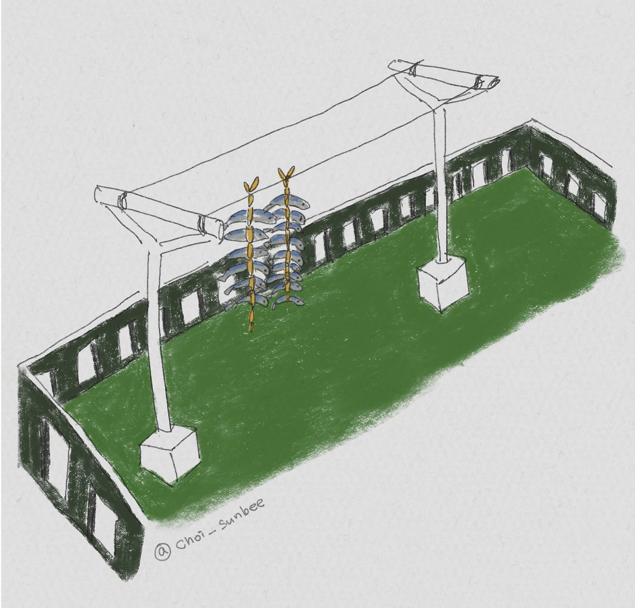 다듬어지지 않은 과메기를 사 와서 옥상 빨랫줄에 걸어놓고 먹을 때마다 몇 개씩 빼내서 먹었다고 한다.
