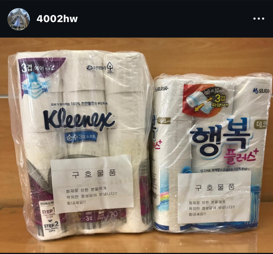 그 당시 나는 그 뉴스를 보고 갑자기 집을 잃은 이재민들을 위해 작지만 내 수준에서 할 수 있는 최소한의 마음을 표했다.