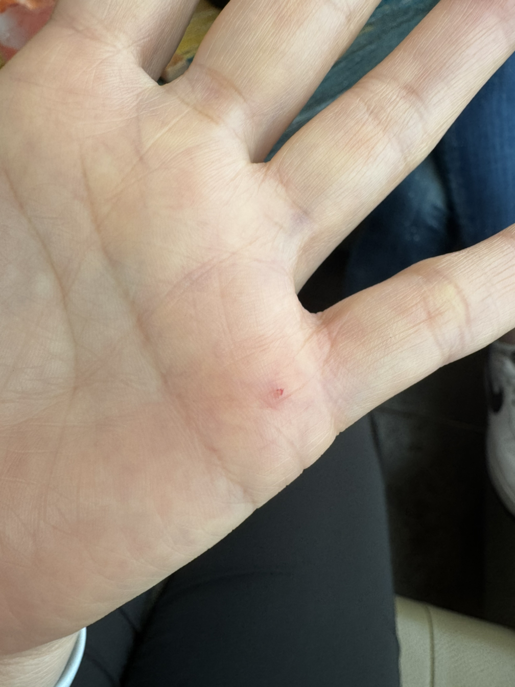 나는 분명 손바닥을 보여주면서 넘어져서 다쳤다, 혹시 밴드 있느냐고 물었더니