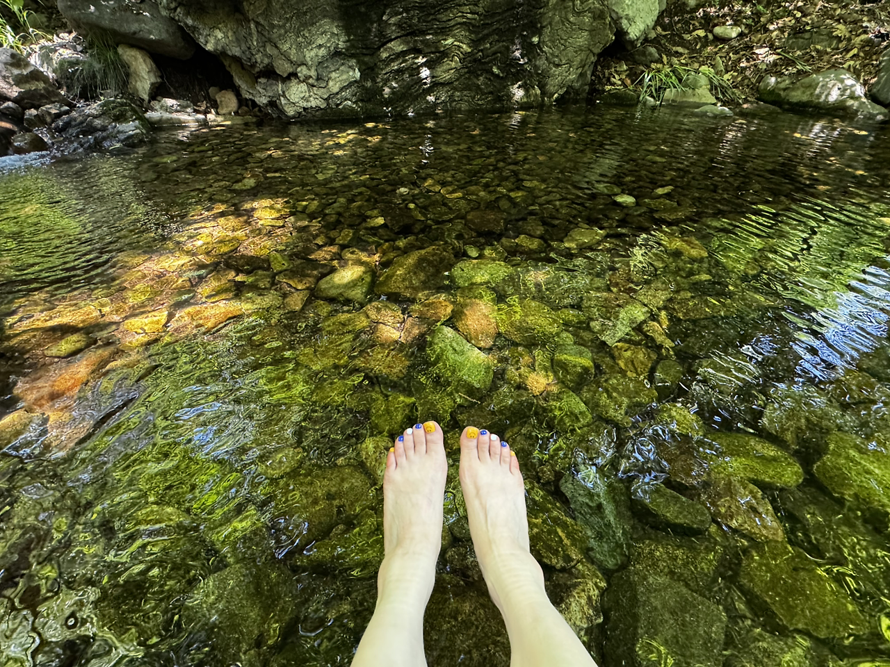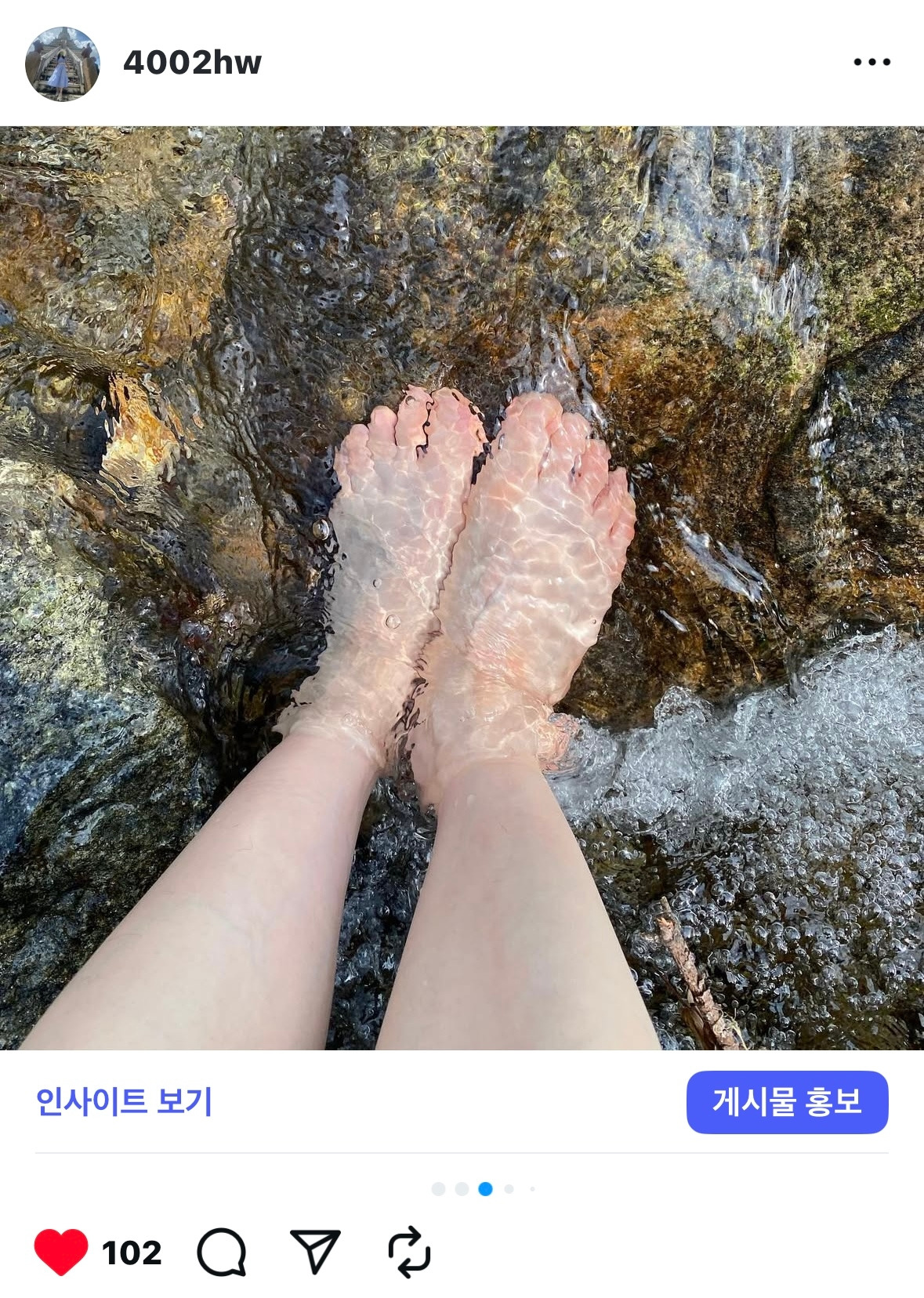 그것은 바로 계곡물에 열불난 발을 잠시 식히는 것