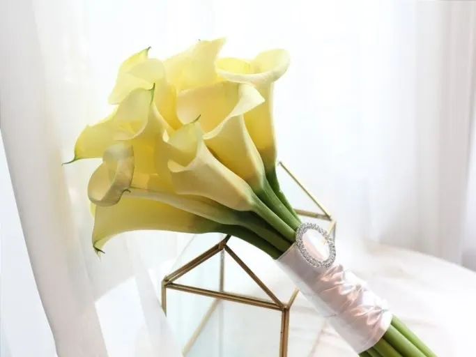 하얀색 드레스를 입고 노오란 카라 부케를 들고 주례 없는 결혼식을 처음으로 선보였다.