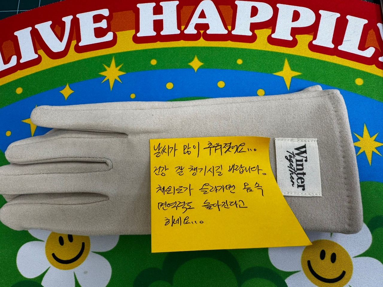 장갑을 받고 내 따뜻한 마음이 좀 전달되기를…