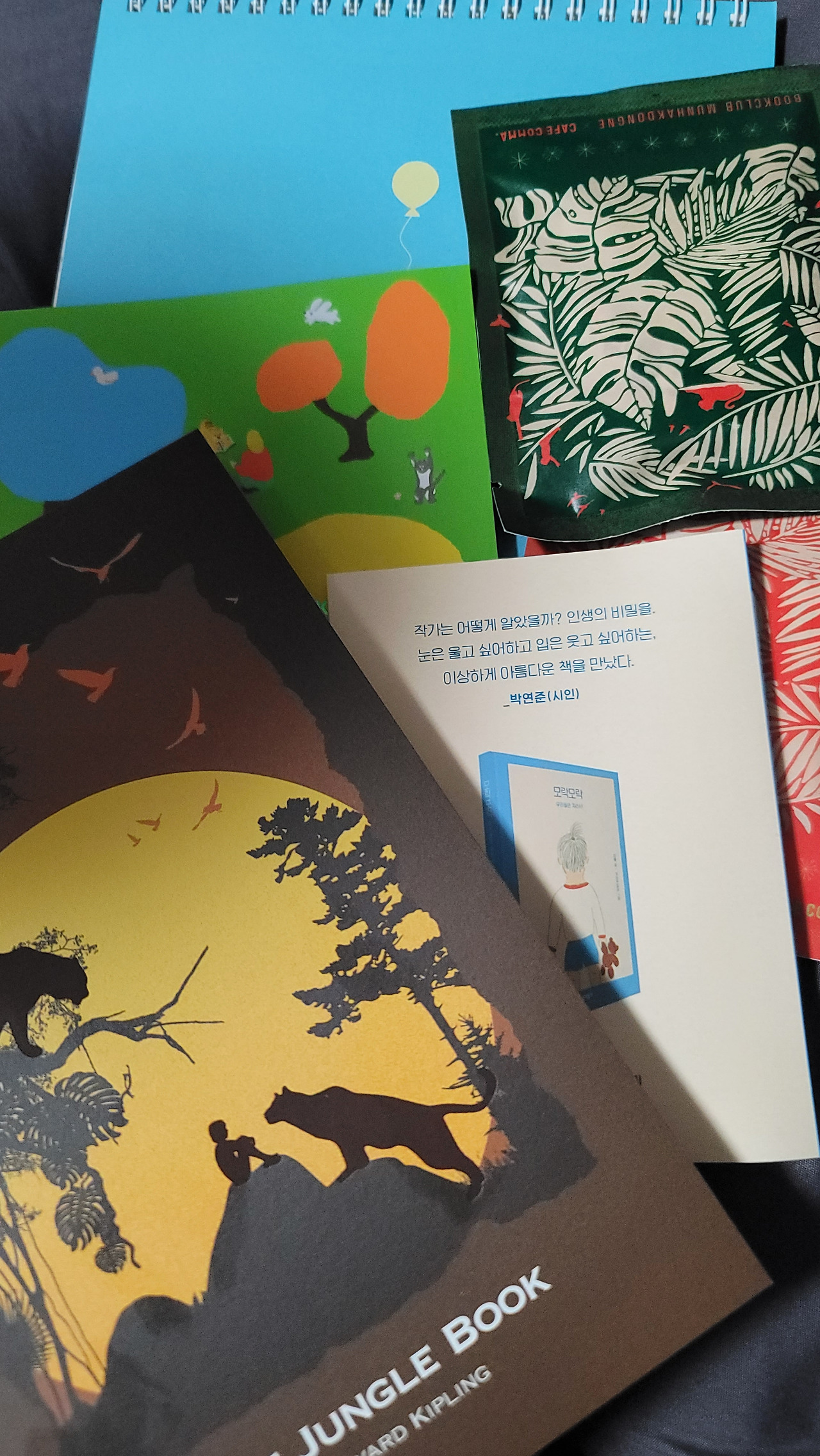동물권행동 기업 카라와 협업하여 구성된 송년키트에는 동물 관련된 명작 <정글북>과 문학동네출판사 사람들의 이야기가 담긴 에필로그북, 샴푸 키트와 티백, 달력 등이 담겨있었다. 티백 포장지가 크리스마스를 연상하게 해 주었고 박스포장 자체에 크리스마스 메시지를 담아서 무료했던 일상을 빛나게 해 주었다. 의미를 담은 선물을 보내준 출판사가 센스 있다고 생각한다.
