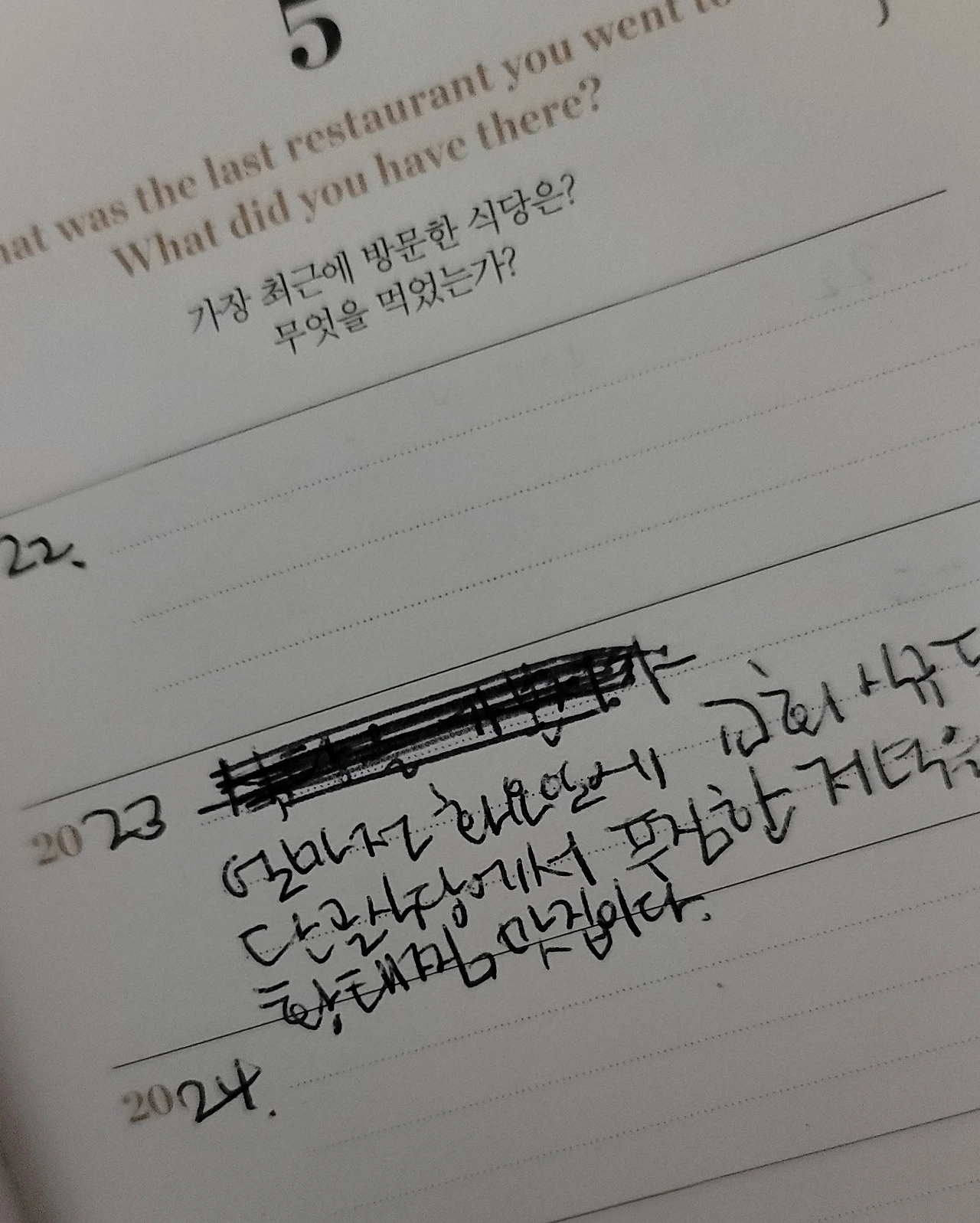 22년 이 날은 식당에 간 기억이 없어 안 적고 23년에만 기록했다. 24년에 읽으면 또 다르지 않을까