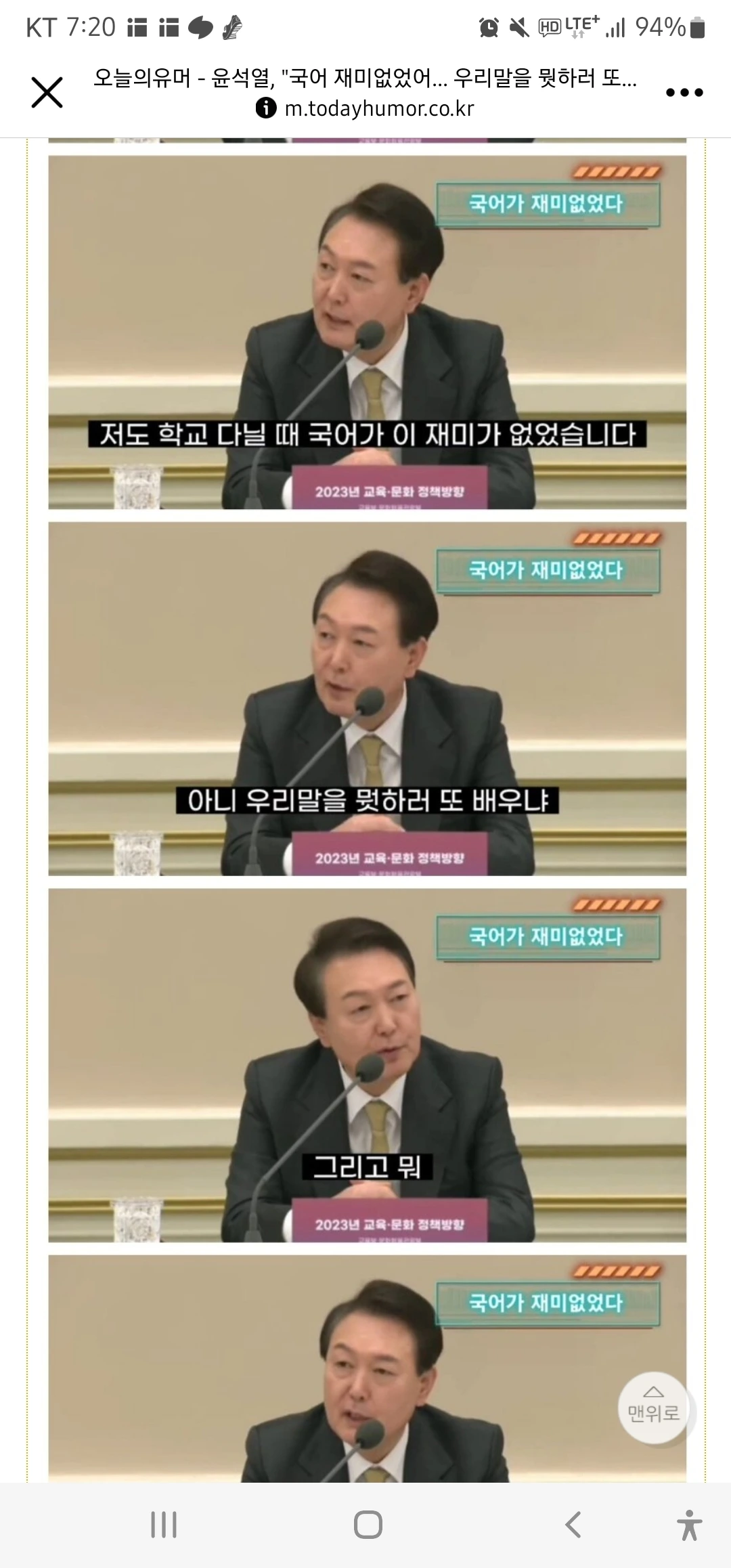 대통령이란 사람이 학교 다닐 때 국어를 싫어했다는 말을 하며 이런저런 충고를 늘어놓아 국민들의 눈살을 찌푸리게 했다.