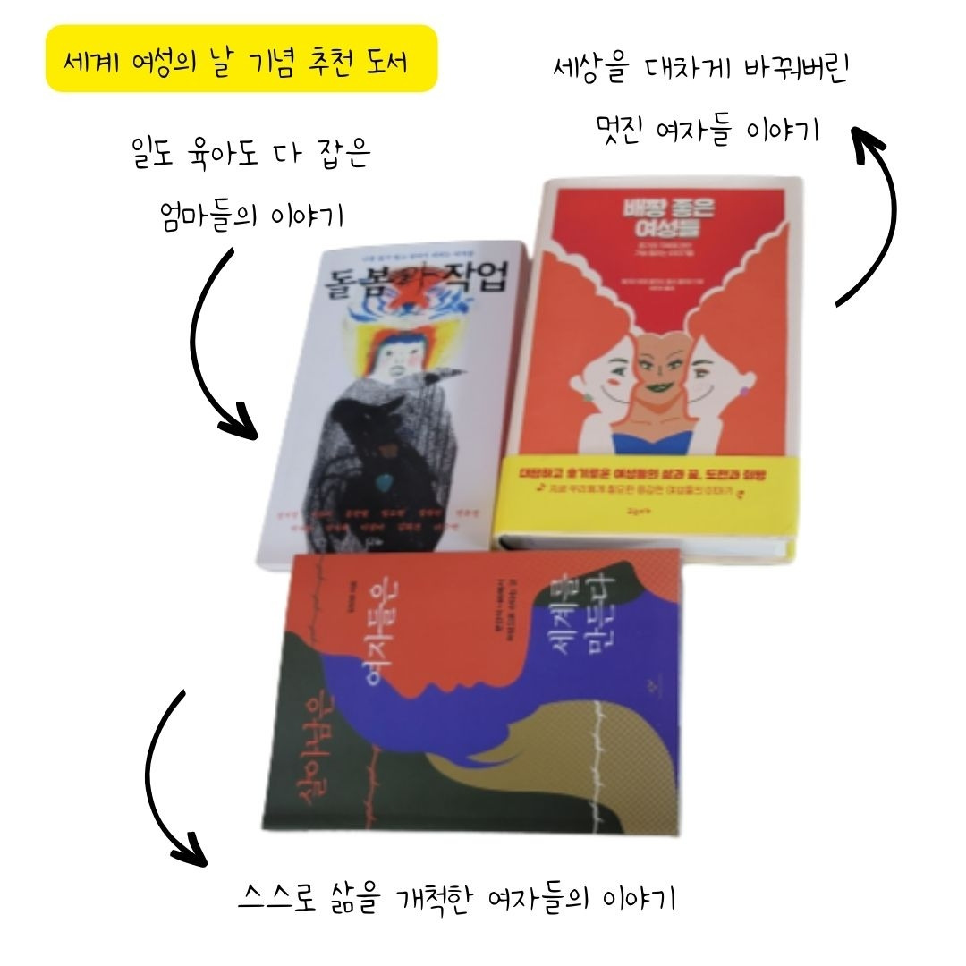 내 책장을 보면 대체로 여성작가들의 책, 여성 예술가들의 삶이 담긴 책, 여성들이 세상을 바꾸는 책들이 많다. 덕분에 해마다 새로운 책들을 추천할 수 있다.