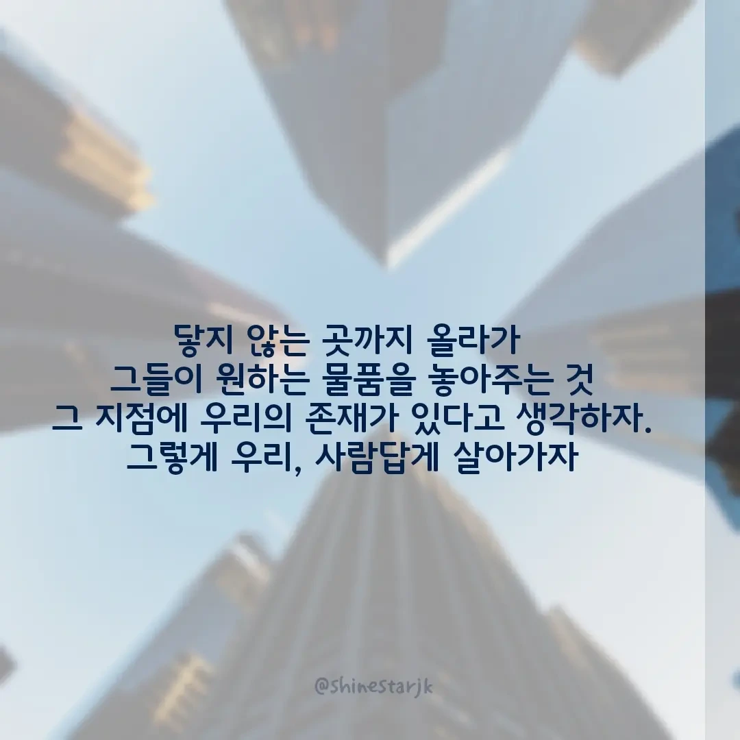 속처럼 택배기사님들을 위한 쉼터가 있다면 좋겠다는 생각이 들었다.