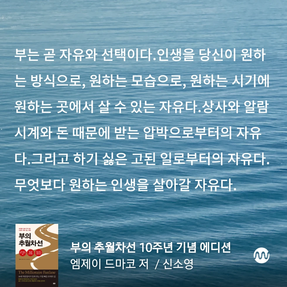 이 책에는 부의 비밀을 풀고, 당신이 현재 있는 길에서 벗어나 부를 향한 지름길로 인도하는 300여 가지의 탁월한 지혜가 담겨 있다. - <부의 추월차선 10주년 기념 에디션>, 엠제이 드마코 저 / 신소영