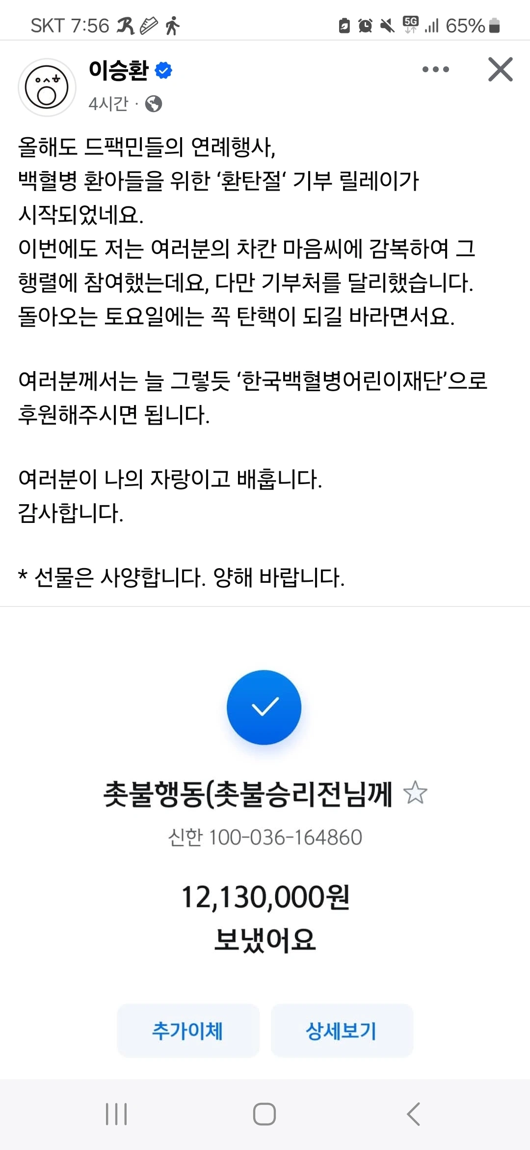 가수 이승환 님이 촛불집회 주최단체에 기부금을 보냈다고 한다.