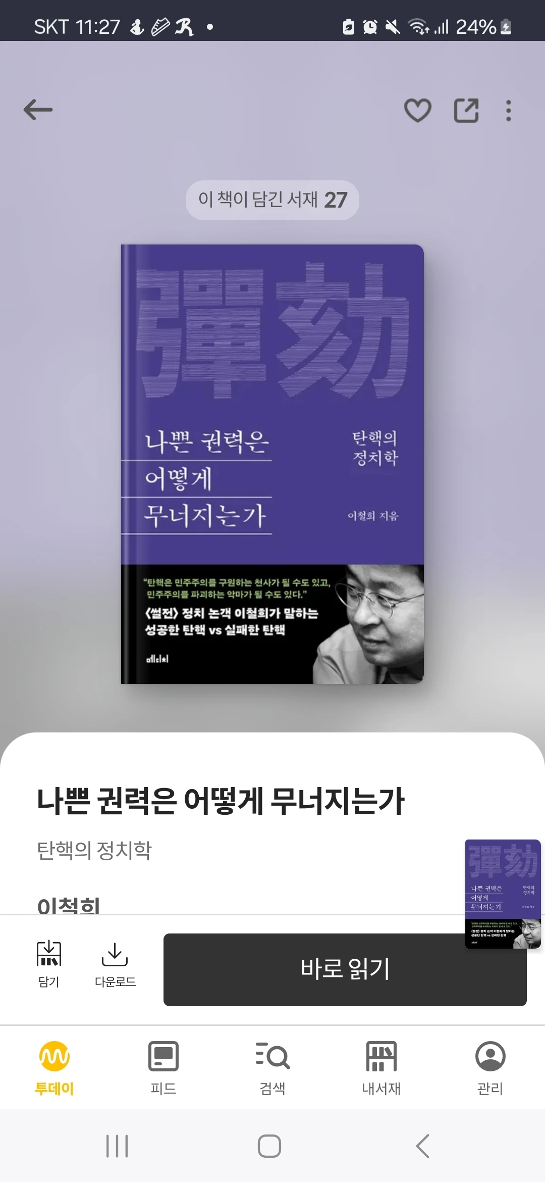 탄핵 여부는 국민에게 달려 있다. 어느 쪽이든 국민을 우습게 보면 탄핵당한다. 이 책은 어떤 경우 탄핵에 나서고, 어떻게 해야 탄핵을 피할 수 있는지에 대한 정리다. - <나쁜 권력은 어떻게 무너지는가>, 이철희 - 밀리의 서재