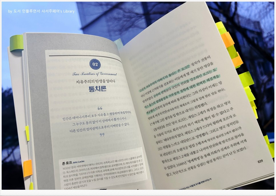 절대왕정과 가부장이 기반이던 시대에 그의 철학은 왕에게 부여된 신성한 권리를 자연권을 가진 개인에게 돌려줍니다. 또한 그는 자유경제와 재산권 때문에 도덕적 책임감이 끝나는 것이 아님을 명확하게 밝히고 있습니다. 로크의 사상은 국가의 존재 이유에 대해 현대를 사는 우리가 깊이 새겨야 할 정치철학입니다.
