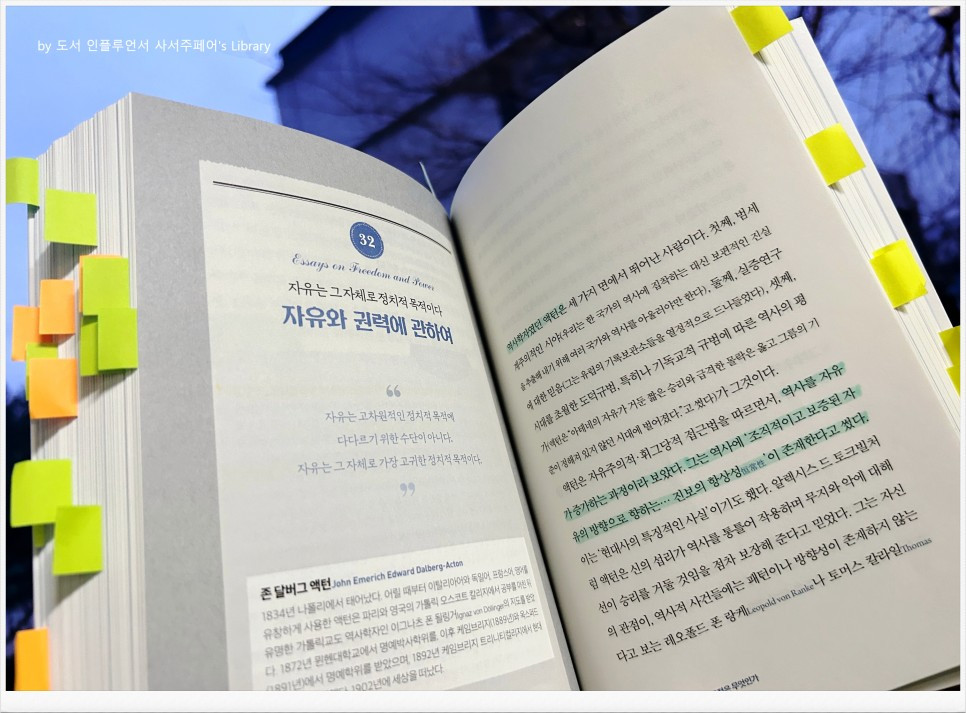 그렇기에 자유의 역사는 “인간의 권력으로부터 인간이 해방된 역사”이며, 자유는 민주주의나 평등보다 중요하다고 주장합니다. 바스티아의 법에 대한 철학과 액턴의 자유에 대한 사상은 민주주의를 염원하는 사람들에게 정치의 진정한 목적과 정부의 역할에 대한 고민의 시간을 갖게 해줄 것입니다.