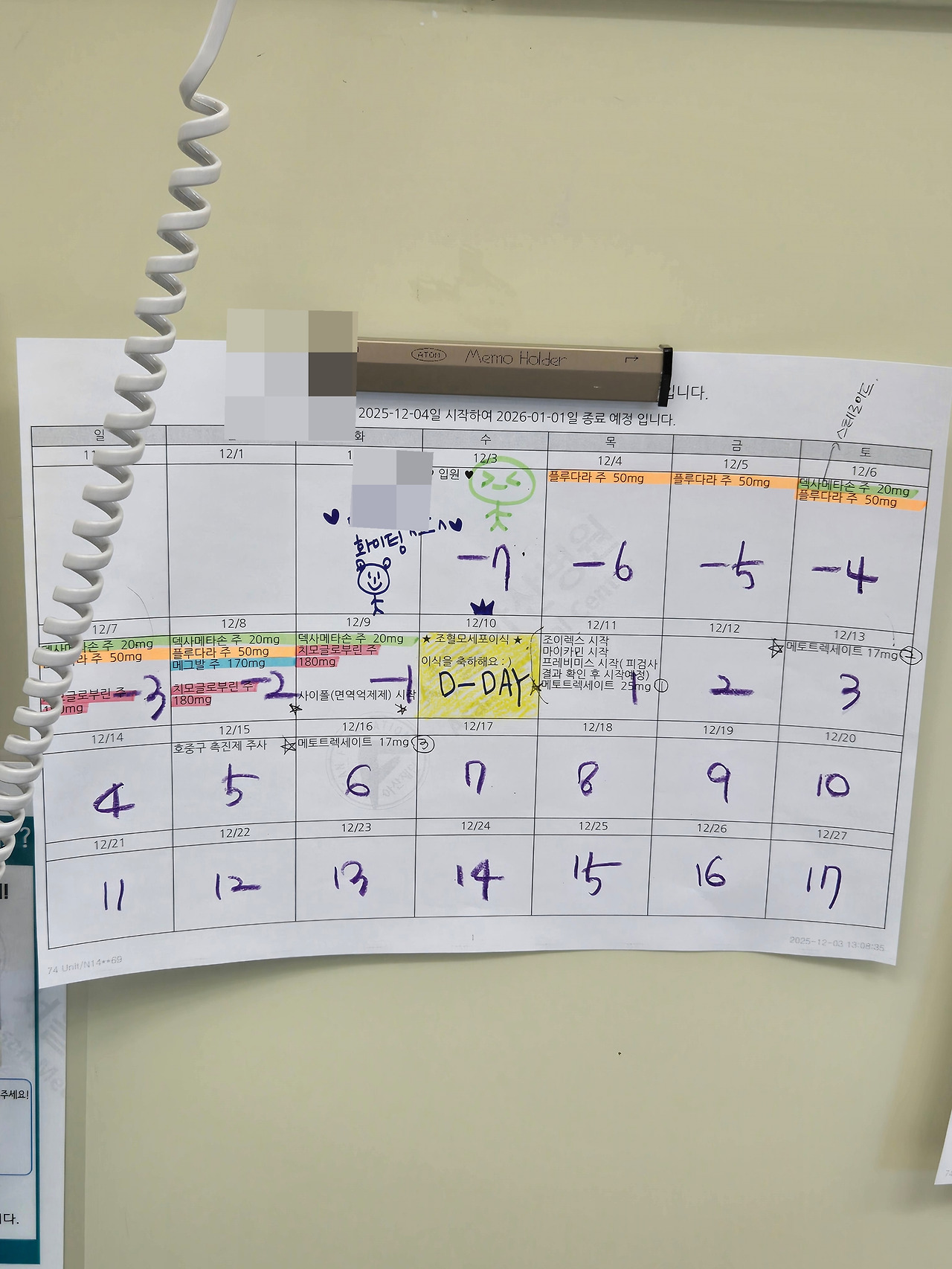 일정 : 무균실 입원