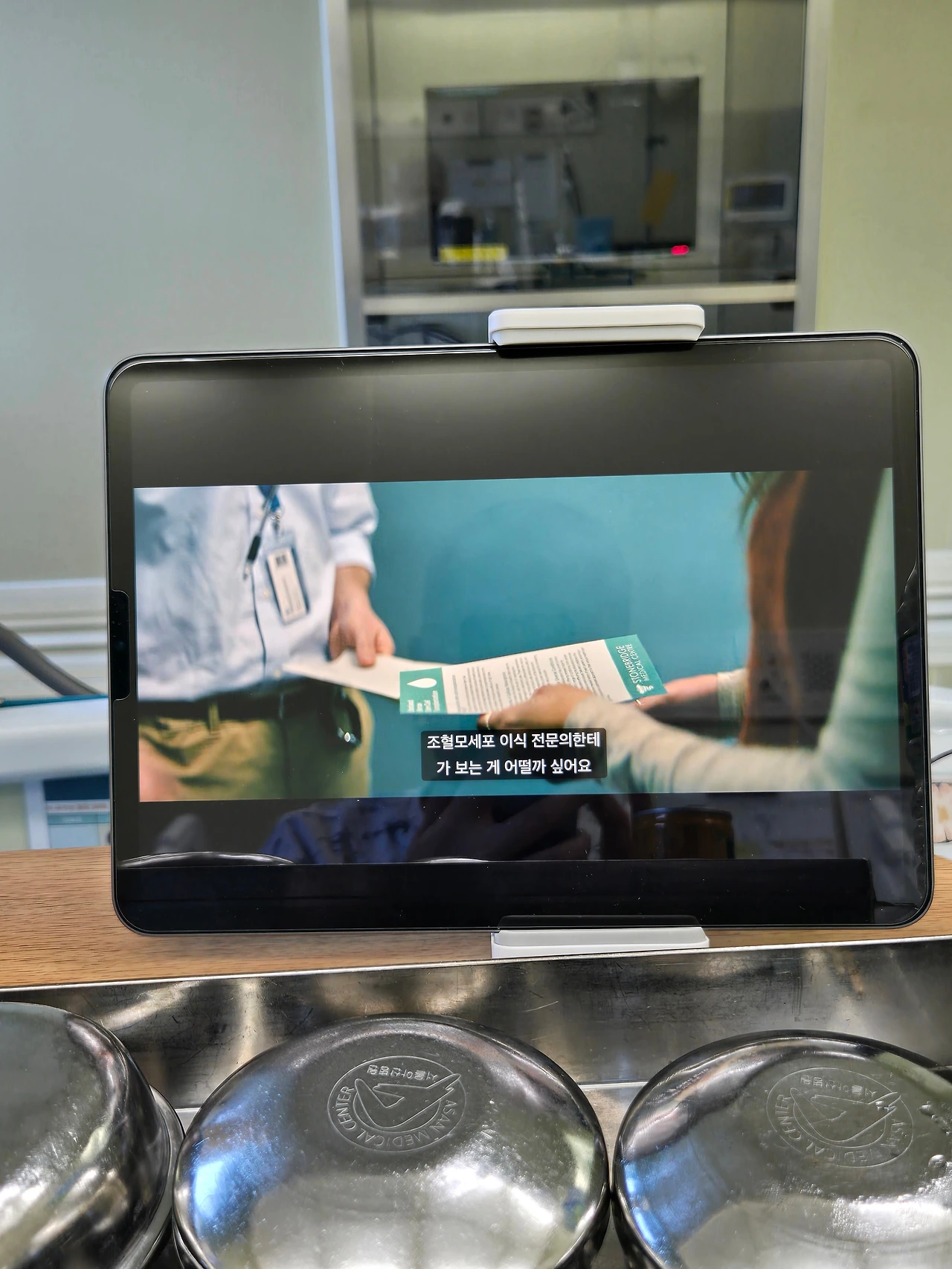무균실 청소와 소독은 아주머니께서 해주신다.