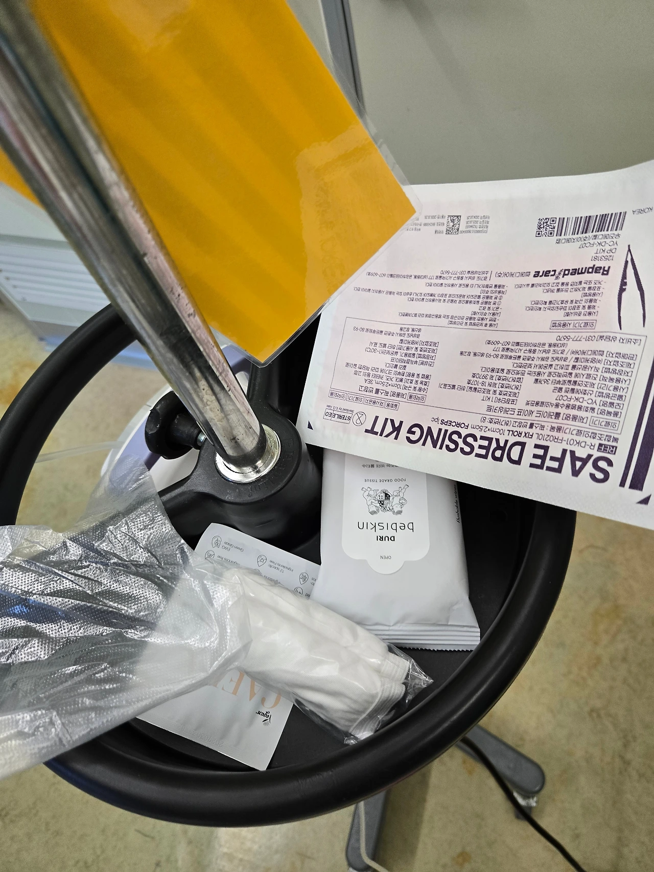 소독티슈로 몸을 소독하고