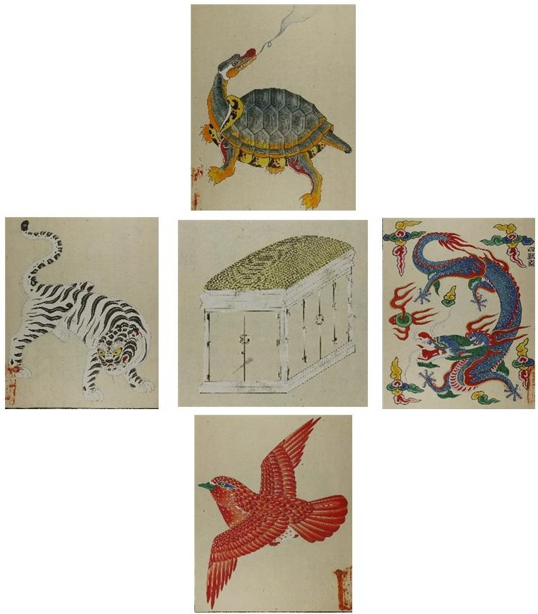 따라서 여기서 다루고자 하는 ‘거북’ 도상 또한 17세기 이후 ‘흉례’ 관련 『의궤』(이하 『의궤』)의 찬궁의 사방 벽에 그려 붙였던 <사수도(四獸圖)> 중에서 ‘현무’를 대상으로 한다.