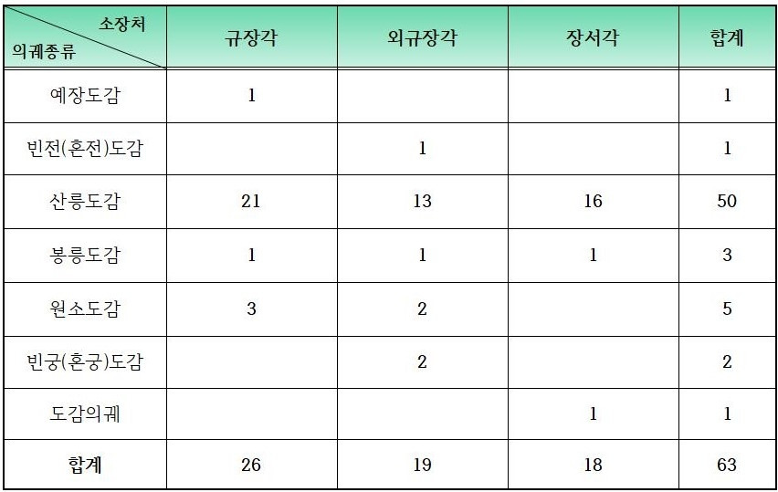 규장각은 26개의 소장 中, 『산릉도감의궤』 21개, 『원소도감의궤』3개, 『예장도감의궤』 1개,