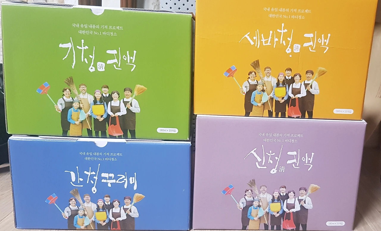 집에 배달되어온 청소 도우미들입니다. 처음엔 낯선 내음과 맛들이 차차 익숙해져 달고 묘했어요.