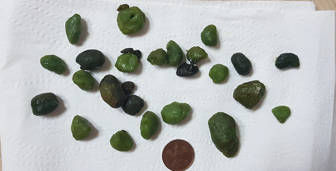 그렇게 자정 지나 한 번도 안 깨고 푹 잤어요. 아침 6시 둘째 날 임무들 시작했어요. 지침대로 8시, 9시 행하고 10시에 마그밀 8알과 물 한 잔 더 마셨어요. 10시 15분, 처음 화장실 신호가 왔고 알갱이들 잔잔히 10개 정도 나왔어요. 생각보다 작아서 약간 실망이었지요.