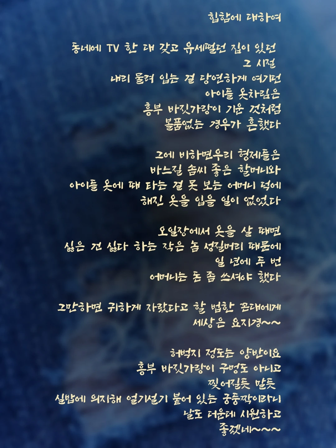 아이들 옷에 때 타는 걸 못 보는 어머니 덕에