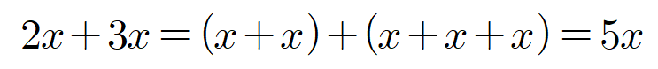 와 같이 ‘같은 수를 더한다’는 뜻입니다. 초등학교 때 곱셈에 대한 원리를 제대로 이해해야 중학교 때 다음과 같은 연산을 이해할 수 있습니다.