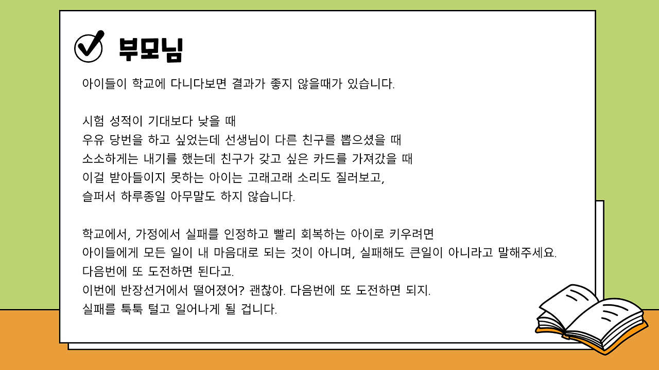 실패를 극복하는 일은 어른도 쉽지 않습니다.