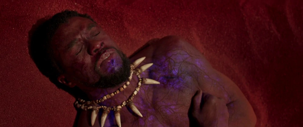 MCU 영화 '블랙 팬더’에서 주인공 트찰라가 하트 모양의 꽃에서 추출한 진액을 마시고 꿈속에서 아버지를 만나는 모습