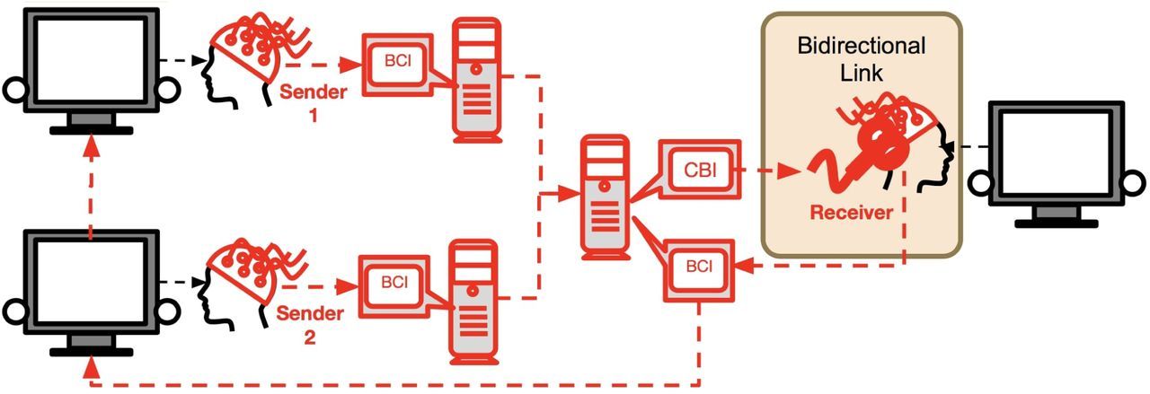 간단하지만 혁신적인 개념의 실험을 성공적으로 마친 라오 박사팀은 더 한발 나아가 두 사람 이상의 협업으로 게임 '테트리스'를 수행하는데도 성공하였습니다. 시험자가 각각 역할을 분장하여 테트리스의 벽돌을 움직이고 돌려서 틈에 맞춰 넣는 것이죠. 일 대 일의 개념을 넘어 다수의 사람들이 생각만으로 협업을 하는 개념을 실행한 최초의 사례가 되었습니다. 이런 놀라운 시스템이 언젠가 상용화된다면 전화나 스마트폰의 개념을 뛰어넘는 어마어마한 커뮤니케이션의 혁명이 일어날 수도 있습니다. 라오 교수의 실험은 그 가능성을 보여주는 첫 시도였구요.