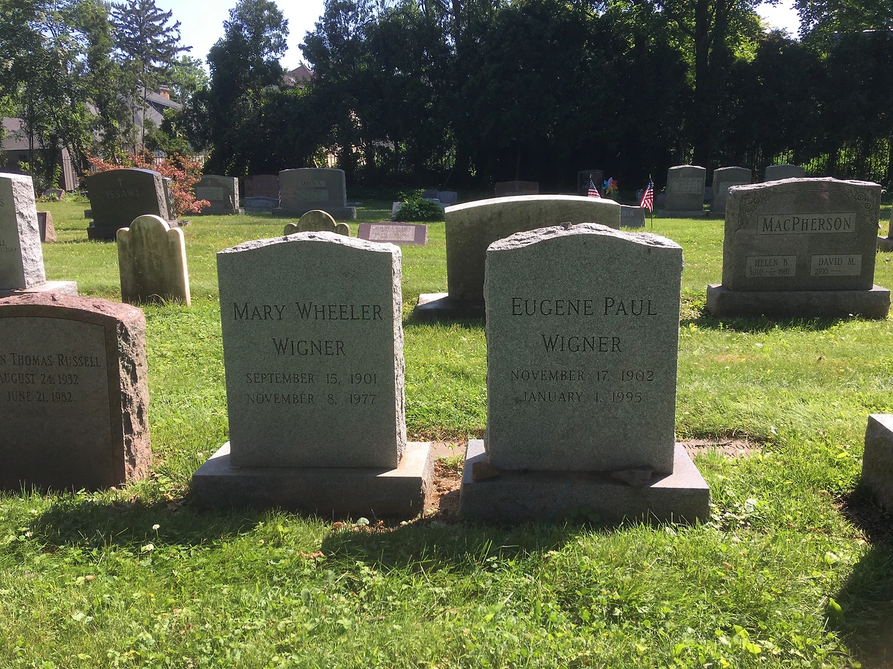 아인슈타인의 후배 물리학자로 미국의 저명한 페르미상 그리고 노벨 물리학상을 수상한 이론 및 수리 물리학자가 이곳에 잠들어 있습니다. 그가 헝가리 출신 물리학자 유진 위그너(Eugene Wigner)입니다. 그는 1963년 원자핵과 기본 입자에 관한 이론과 기본 대칭 입자의 발견"에 관한 공로로 노벨 물리학상을 수상했습니다. 프린스턴 대학교에 30년간 연구생활을 했고 역시 물리학자이며 럿거스대학 교수였던 아내와 같이 이곳에 묻혀있습니다.