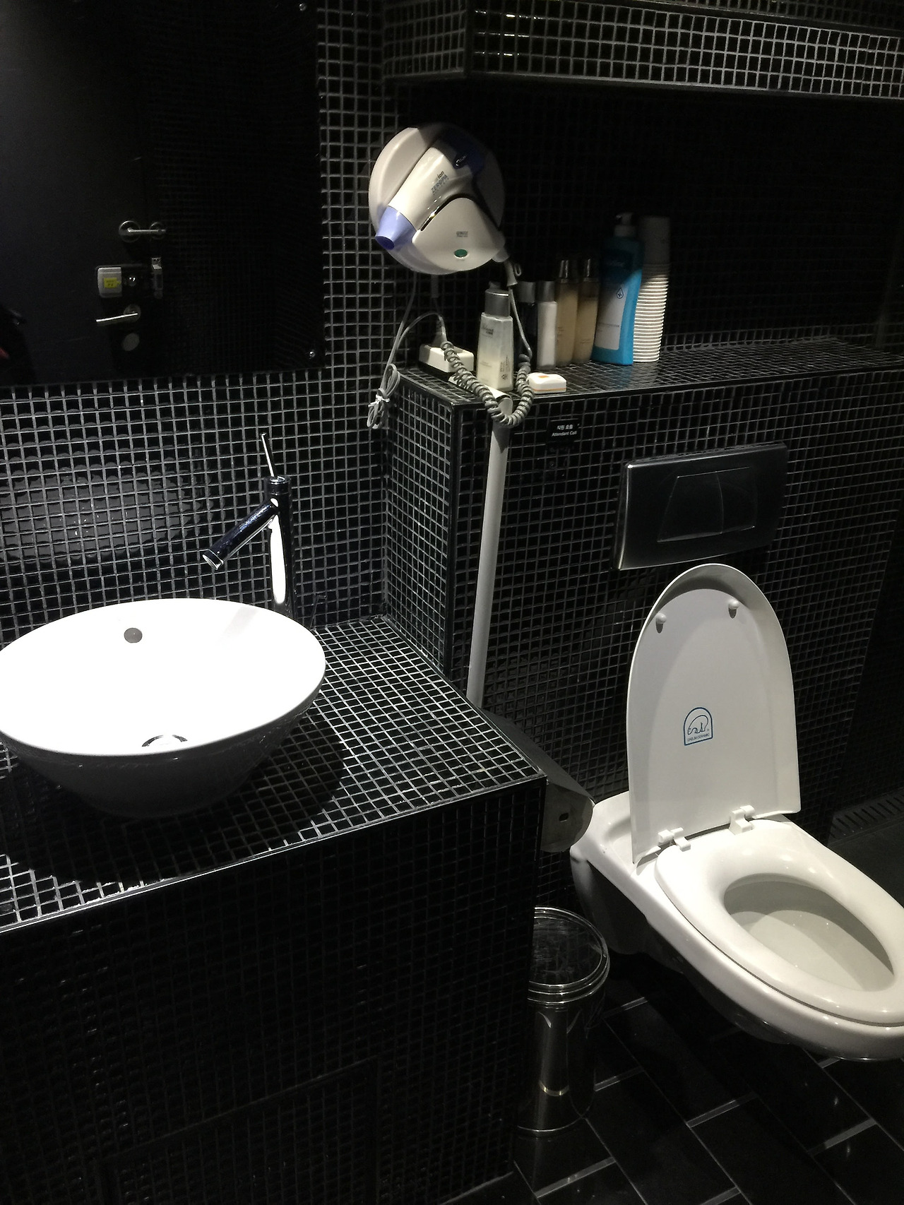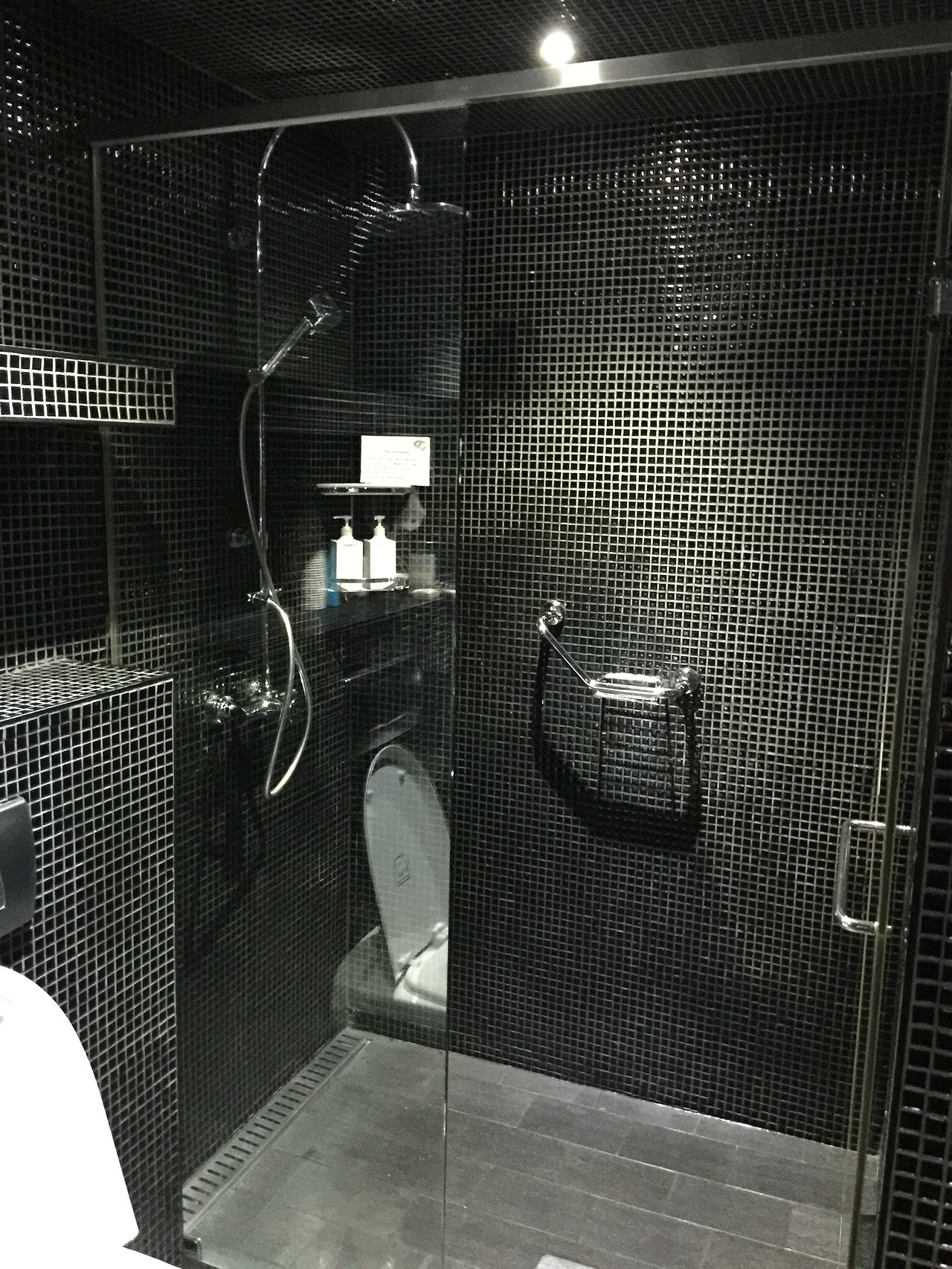 오우! 내가 생각했던 그냥 여러 명 서서하는 샤워장이 아닌 개인 공간이 있는 샤워룸이고 밖 테이블, 의자들과 달리 상당히 고급스러웠다. 또한 안에는 샤워부스가 있고