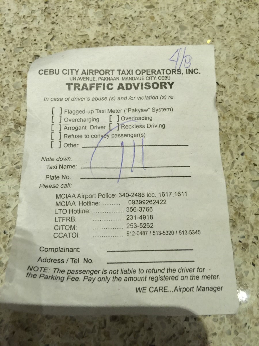 사실 타기 전에 미터나 가격 흥정도 하지 않았다. 귀찮아서 달라면 달라는대로 줄려고 했는데 알아서 미터기를 키고 간다. ㅎ 어차피 많이 요구해봐야 4-500페소 일 텐데... 세부 시티 아얄라 몰 근처의 만달린 호텔까지는 약 300페소 정도 요금이 나왔다.